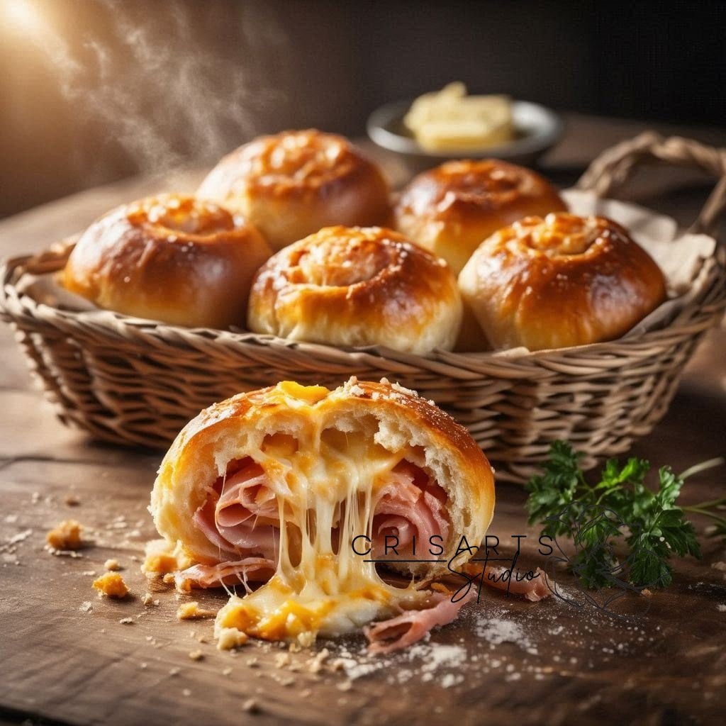 2. Distribua o fiambre e o queijo por toda a extensão da massa, formando camadas sobrepostas.